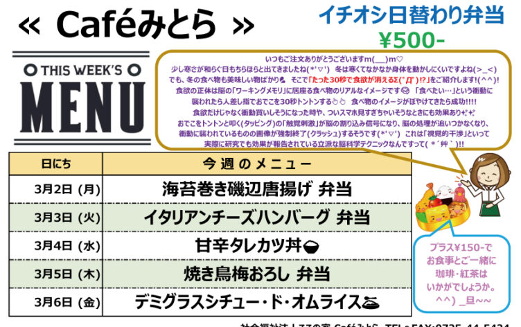 管理栄養士考案の栄養バランス良い食事を施設内での手作りにこだわり提供。美味しい昼食は自慢の一つ。