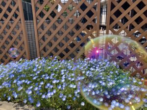 徐々に暖かくなり、第4ここの家の花壇には綺麗なネモフィラが咲いているので、気分転換にとレジャーシートを広げ日向ぼっこしました✨ 花を眺めながらレジャーシートに寝転がり、ゆっくりとした時間を過ごしました♪ 日差しが眩しくて傘を差しつつ…(笑) 他チームの利用者さんも一緒にゆ~ったりと日向ぼっこしました🌞