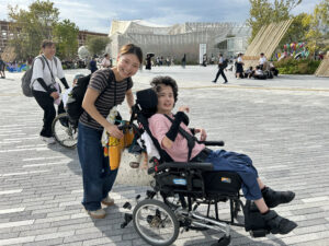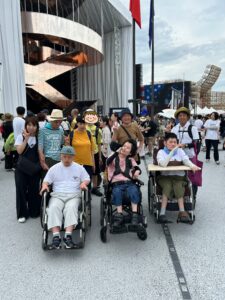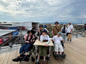 万博では、利用者さん達も楽しそうに過ごされており、お昼ご飯を食べたり大勢の人達を見たり、楽しい体験ができました。支援員も楽しむことや学ぶことができました。