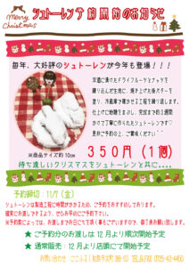 シュトーレンは製造工程に時間がかかるため、ご予約をおすすめしております。