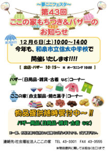 『夢ここフェスタ』12月6日(土)10:00~14:00 和泉市立信太中学校グラウンドで開催いたします!
