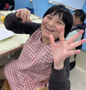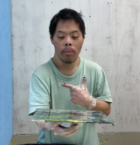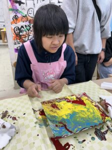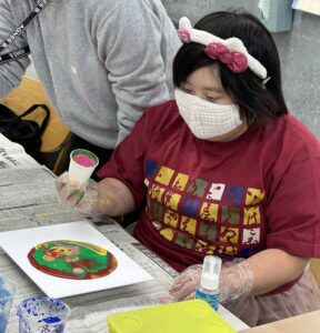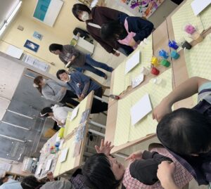 11月13日(木)にアート取り組みに行ってきました✨ 今回は「ポーリングアート」をしました!! 初めの色選びでは直感で色を決められたり、職員と一緒に色を決められたりどの利用者さんも自由に色を選ばれていました😊 選んだ色をコップに入れてキャンバスへ、、、! 色が混ざる瞬間には「おぉ!」と歓声が上がりました😲😲 色を足したりドライヤーで風を当てたり色の変化を楽しみました✨ 世界に一つの素敵な作品の完成です🥰