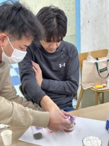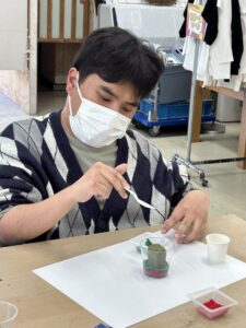 たくさんの色から選んでスプーンでそっとすくって入れていきます🥄