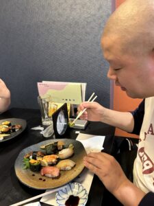 チームCでは、昨年の12月26日に1年の労をねぎらい、お疲れさん会を楽しみました♪ 今回は貝塚市にある『寿司・割烹 たから寿司丸山』へ行ってきました👏うなぎやいくら、うになどなど豪華な寿司が目の前に!利用者さんは美味しそうに食べていました😋 なかには、うにに初挑戦する利用者さんも✨ひと口食べるとぱっと笑顔に「美味しい!」と話され、支援員は拍手でお祝いしました🎶 食後には水間観音寺をぶらりお散歩をしました! 良い1年の締めくくりになり、2026年も頑張っていきましょー🔥