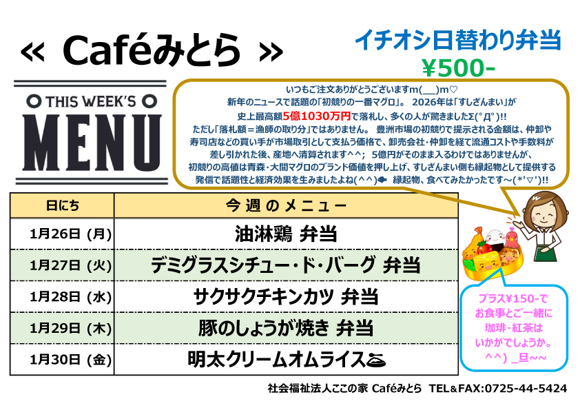 Caféみとら 1/26(月)からのメニュー