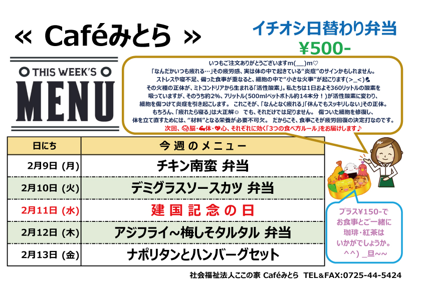 TOP > ここの家便り > Café みとら > Caféみとら イチオシ日替わり弁当(2/9~2/13)